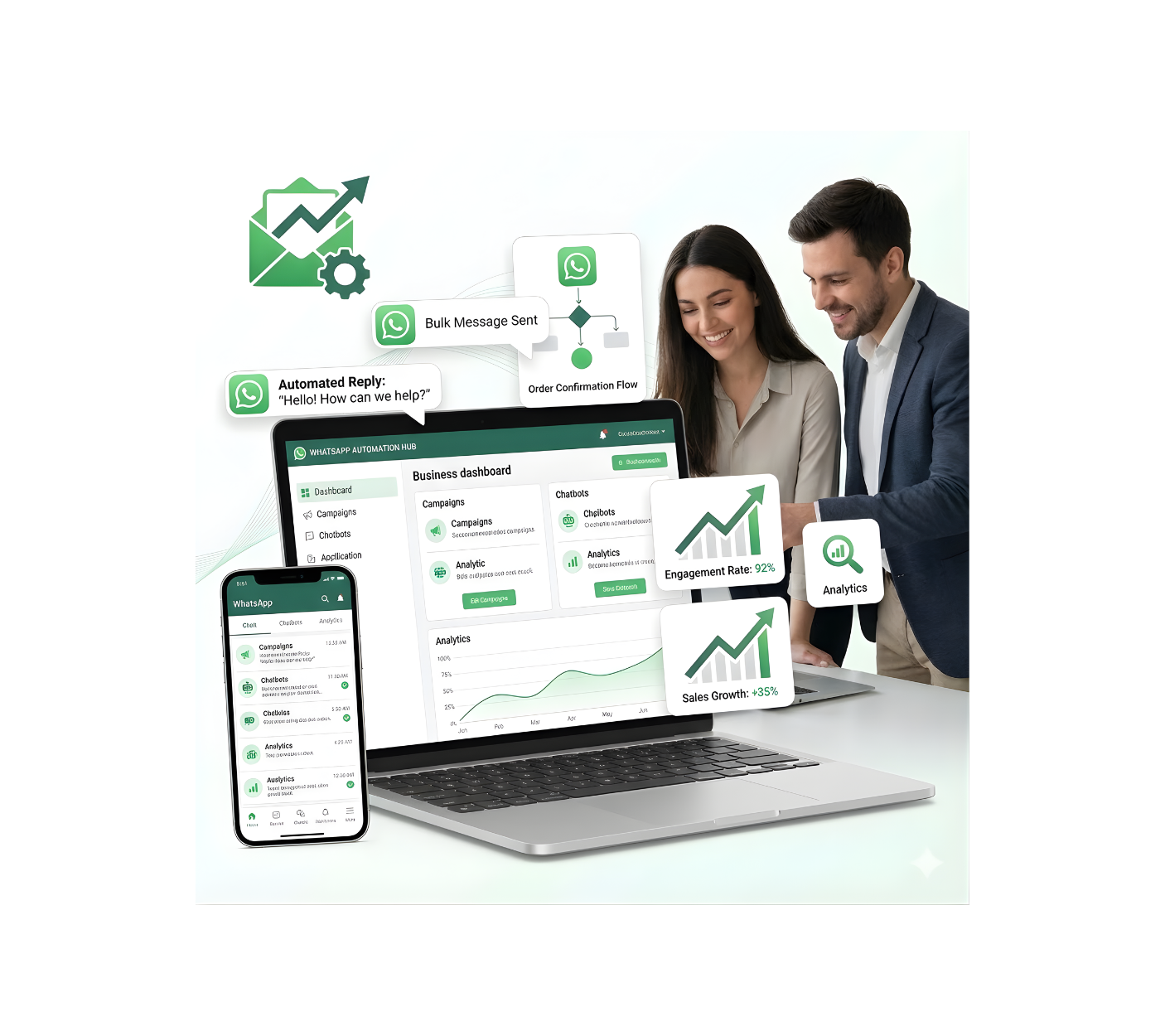 Transform customer engagement with our powerful WhatsApp marketing platform. Send bulk messages, create chatbots, and automate conversations to boost sales and customer satisfaction.